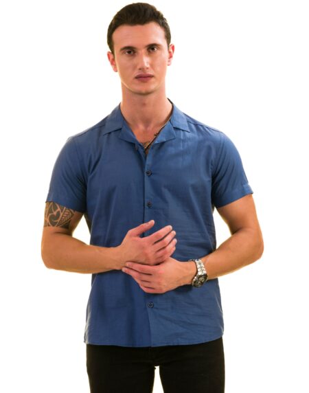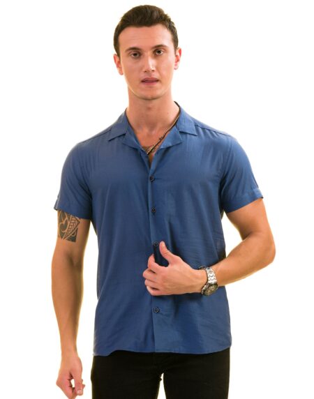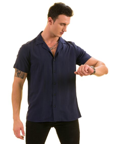 Navy Solid Hawaiian Summer Shirt for Men - European Made & Designed