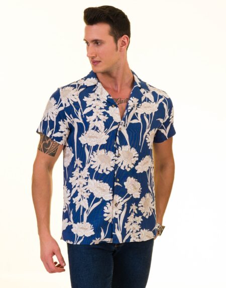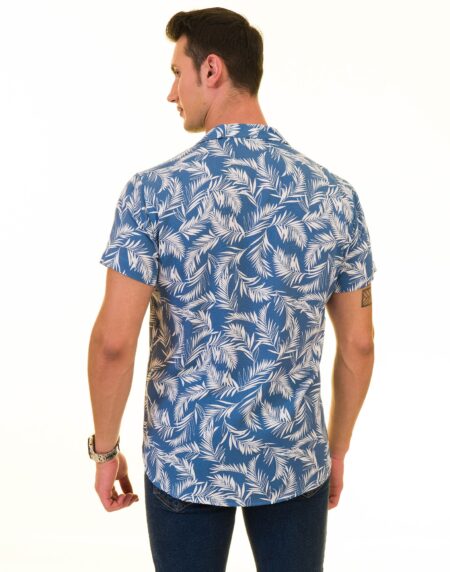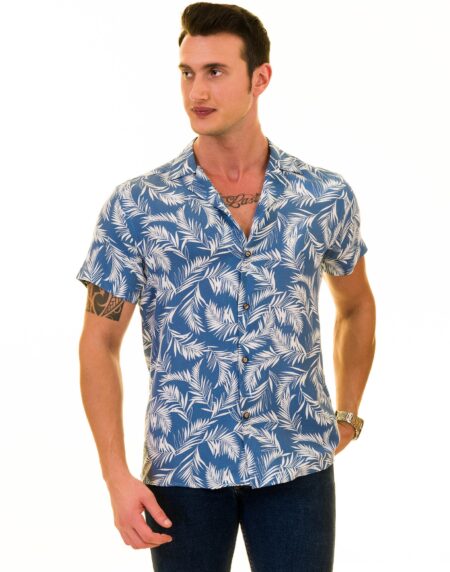 Metallic Blue Hawaiian Shirt for Men - European Designed Summer Style