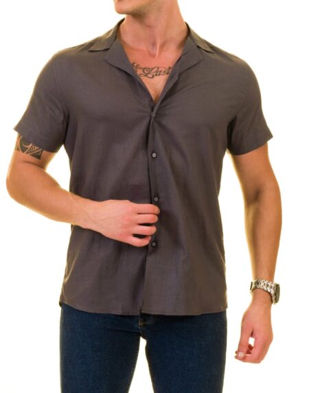 Men’s Solid Gray Hawaiian Summer Shirt – European Made & Designed