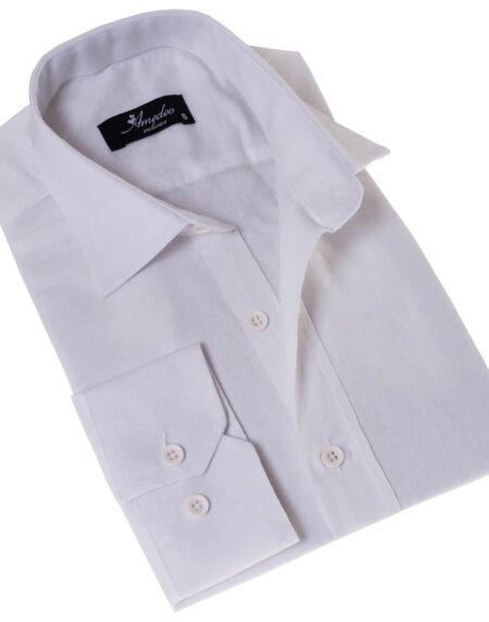 White Luxury Men's European-Made Tailored Fit Linen Button-Up Shirt