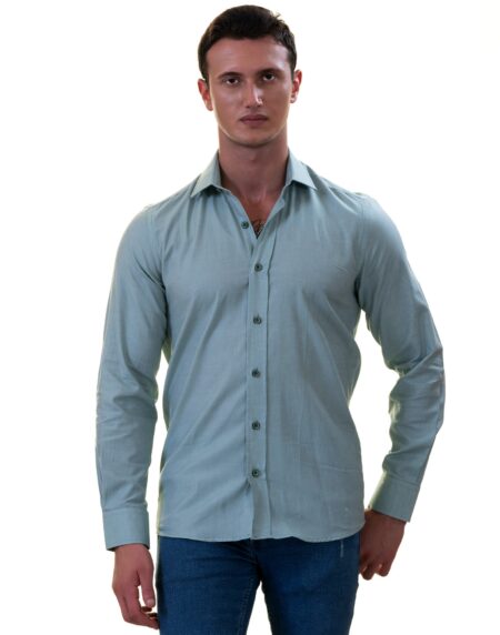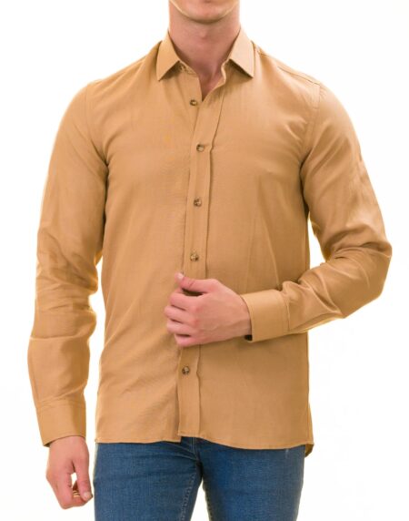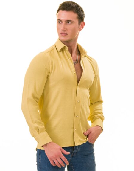 Mustard Luxury Men's European-Made Tailored Fit Linen Button-Up Shirt