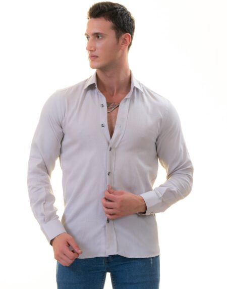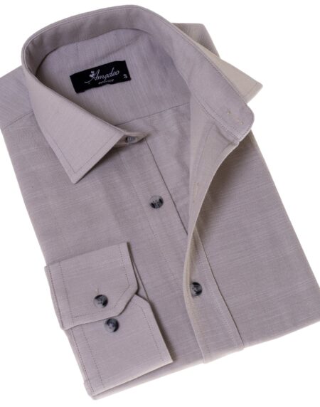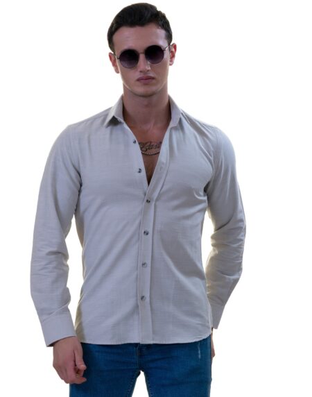 Men’s Light Gray Linen Shirt - Luxury Tailor Fit European Made Button-Up