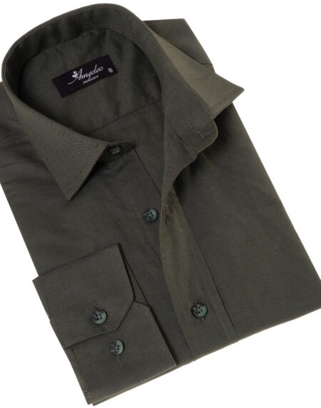 Men's Khaki Linen Shirt - Luxury Tailor Fit European Made Button-Up