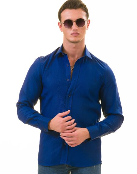 Men’s Royal Blue Linen Shirt - Luxury Tailor Fit European Made Button-Up