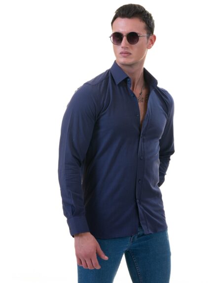 Navy Colored Luxury Men's Tailor Fit Button Up European Made Linen Shirts