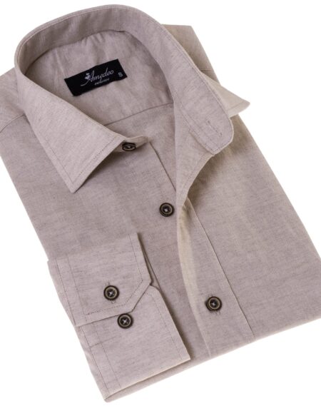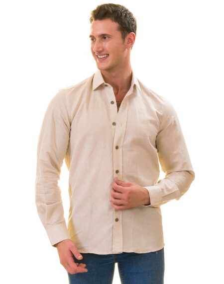 Men’s Beige Linen Shirt - Luxury Tailor Fit European Made Button-Up