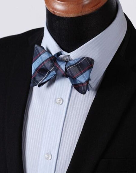 Blue Check Mens Silk Self tie Bow Tie with Pocket Squares Set