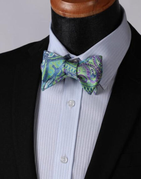 Green & Purpel Mens Silk Self tie Bow Tie with Pocket Squares Set