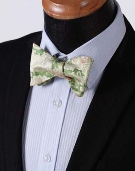 Green Yellow Floral Mens Silk Self tie Bow Tie with Pocket Squares Set