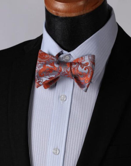 Orange Gray Paisley Mens Silk Self tie Bow Tie with Pocket Squares Set