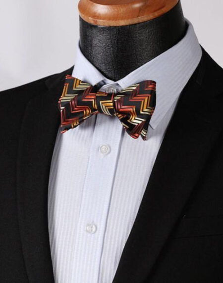 Orange Black Stripe Mens Silk Self tie Bow Tie with Pocket Squares Set