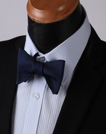Navy Blue Check Mens Silk Self tie Bow Tie with Pocket Squares Set