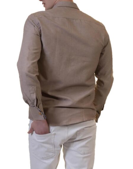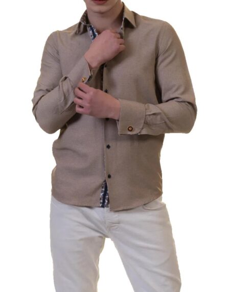Cream with Brown Mens Slim Fit Designer Dress Shirt - tailored Cotton Shirts for Work and Casual