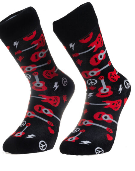 Black Printed Guitar -European Made - Egyptian Cotton Socks - Premium Cotton Fun socks with Soft Elastic