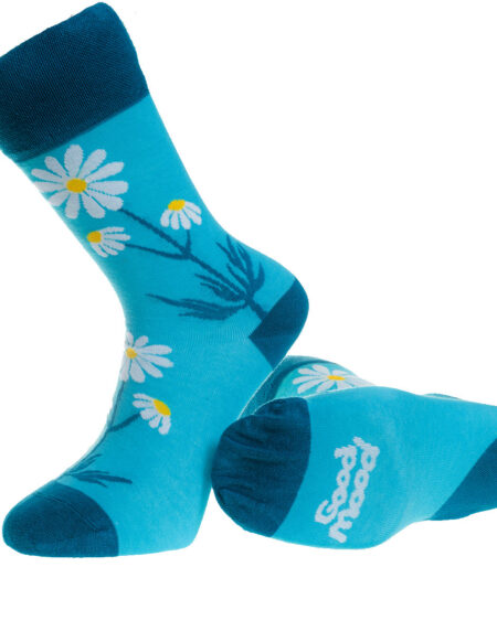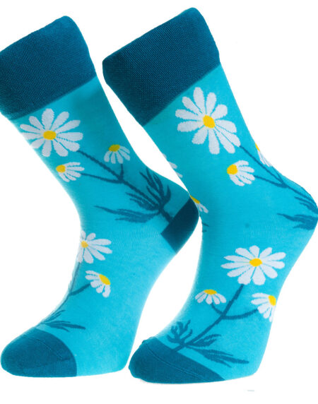 Blue and White Flower Printed -European Made - Egyptian Cotton Socks - Premium Cotton Fun socks with Soft Elastic