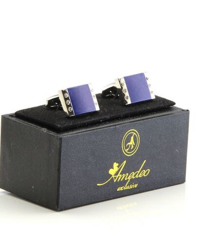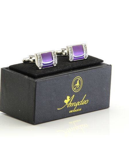 Men's Stainless Steel Silver with Purple and Stones Cufflinks with Box