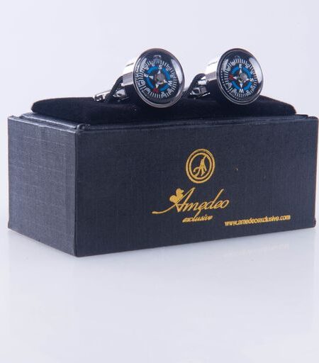 Men's Stainless Steel Silver with Black Compass (Fully Functional) Cufflinks with Box