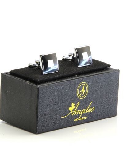 Black with Silver Mens Stainless Steel Square Cufflinks for Shirt with Box - Hand Crafted Perfect