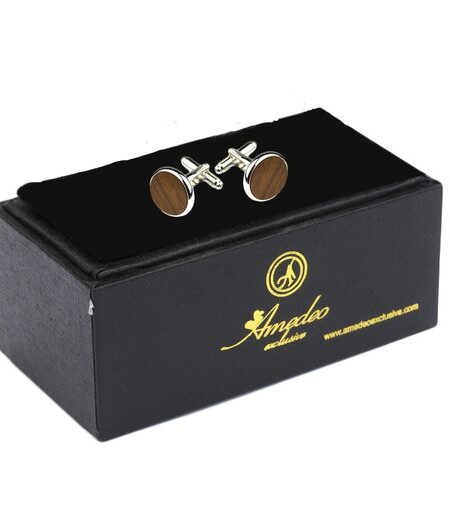 Brown On Silver Mens Stainless Steel Round Cufflinks for Shirt with Box - Hand Crafted Perfect Gift
