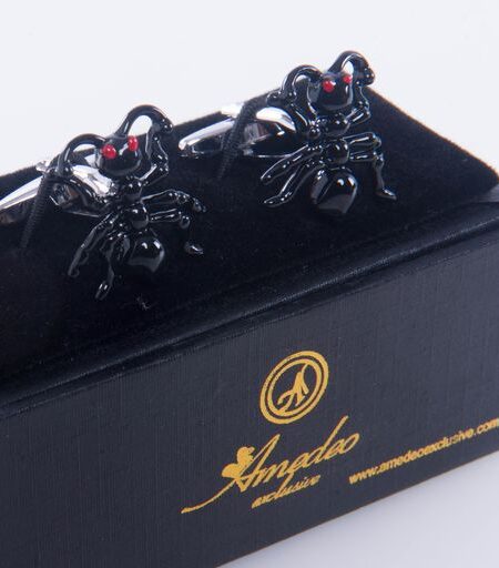 Black Mens Stainless Steel Bug Cufflinks for Shirt with Box - Hand Crafted Perfect Gift