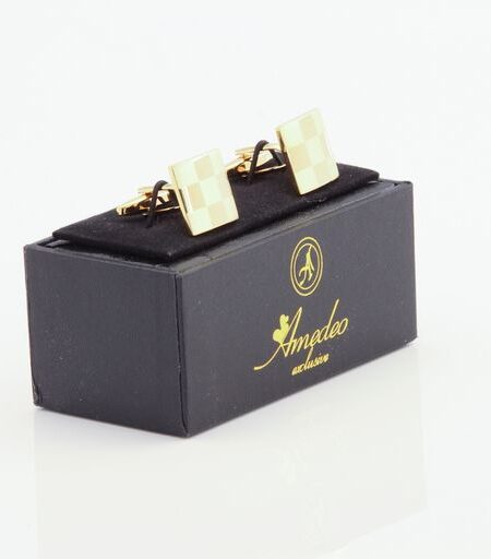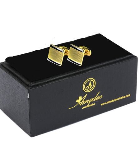 Men's Stainless Steel Exclusive Gold + Champagne Squares Cufflinks with Box