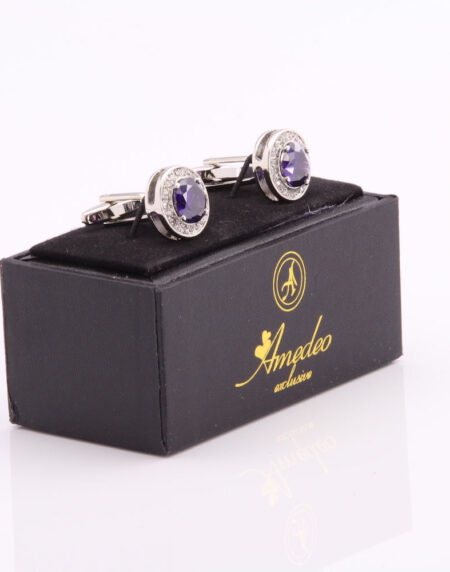 Men's Stainless Steel Silver with purple rectangular stone Cufflinks with Box