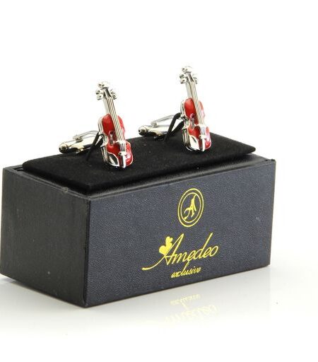 Red Mens Stainless Steel Guitars Cufflinks for Shirt with Box - Hand Crafted Perfect Gift