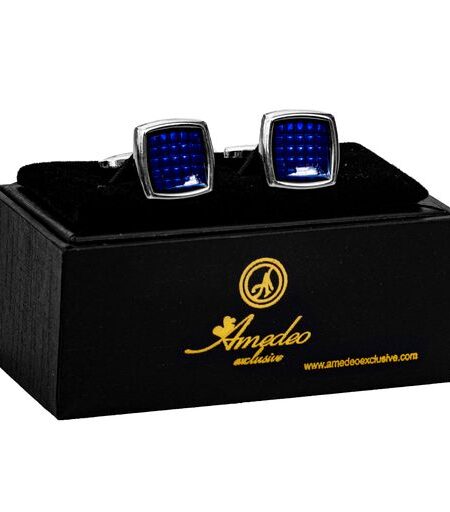 Silver Blue Squares Mens Stainless Steel Square Cufflinks for Shirt with Box - Hand Crafted Perfect Gift
