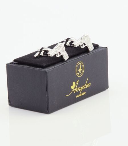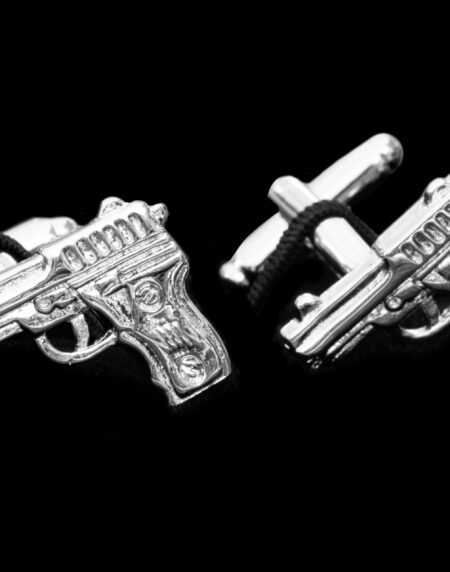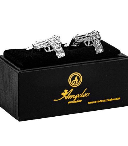 Silver Mens Stainless Steel Guns Cufflinks for Shirt with Box - Hand Crafted Perfect Gift
