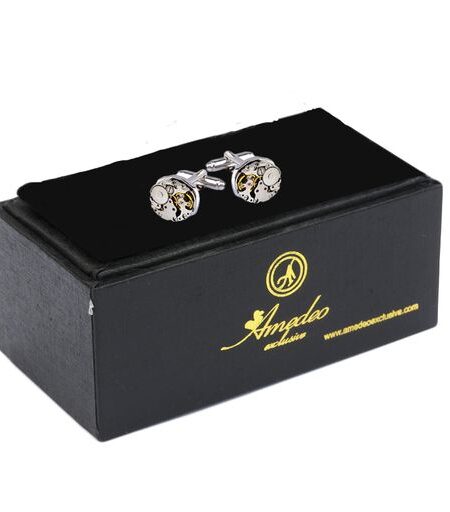 Silver Mens Stainless Steel Functioning Movement Cufflinks for Shirt with Box - Hand Crafted Perfect Gift