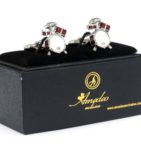 Silver Mens Stainless Steel Drum Sets Cufflinks for Shirt with Box - Hand Crafted Perfect Gift