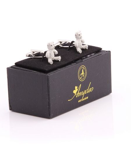 Silver Mens Stainless Steel Bears Cufflinks for Shirt with Box - Hand Crafted Perfect Gift