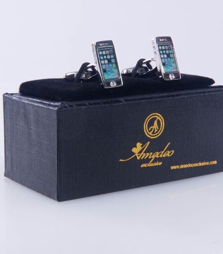 Silver Mens Stainless Steel Cell Phone Cufflinks for Shirt with Box - Hand Crafted Perfect Gift