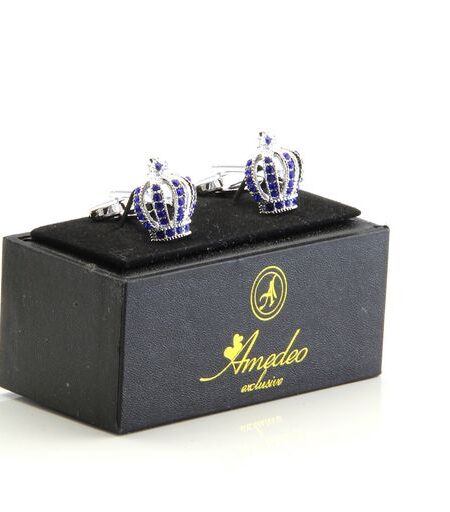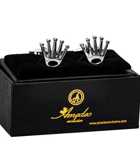 Silver Diamond Mens Stainless Steel Crowns Cufflinks for Shirt with Box - Hand Crafted Perfect Gift