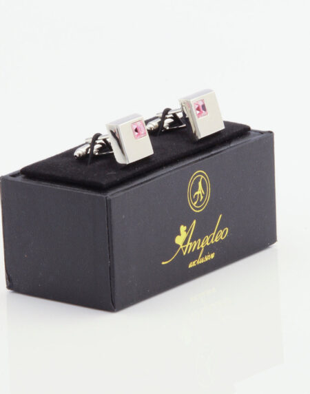 Silver Small Pink Mens Stainless Steel Square Cufflinks for Shirt with Box - Hand Crafted Perfect