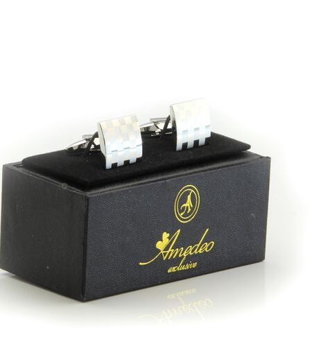 Silver Small White Mens Stainless Steel Square Cufflinks For Shirt With Box - Hand Crafted Perfect
