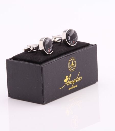 Silver with Black Mens Stainless Steel Temperature Cufflinks for Shirt with Box - Hand Crafted