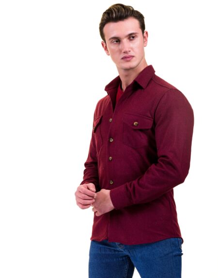 Solid Burgandy Mens Slim Fit Designer Dress Shirt - tailored Cotton Shirts for Work and Casual Wear