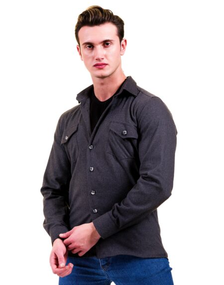 Solid Grey Mens Slim Fit Designer Dress Shirt - tailored Cotton Shirts for Work and Casual Wear