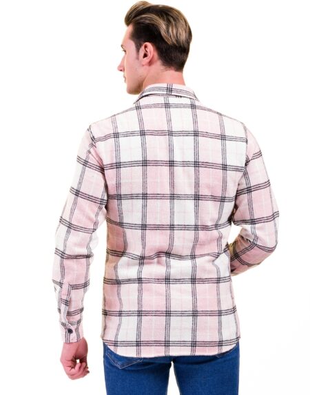 Salmon Pink White Check Mens Slim Fit Designer Dress Shirt - tailored Cotton Shirts for Work and Casual Wear