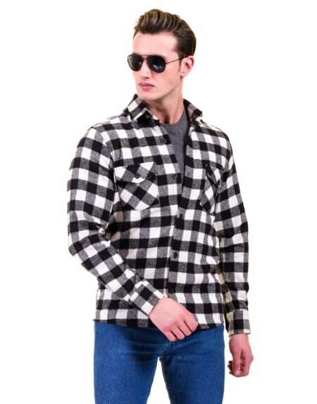 Black White Check Mens Slim Fit Designer French Cuff Shirt - tailored Cotton Shirts for Work and Casual Wear