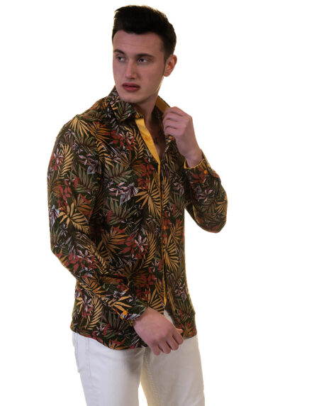 Floral Mens Slim Fit Designer Dress Shirt - tailored Cotton Shirts for Work and Casual Wear
