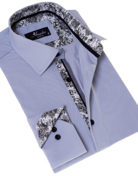 Gray Inside Floral Men's Slim Fit Designer Dress Shirt - Tailored Cotton