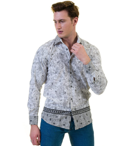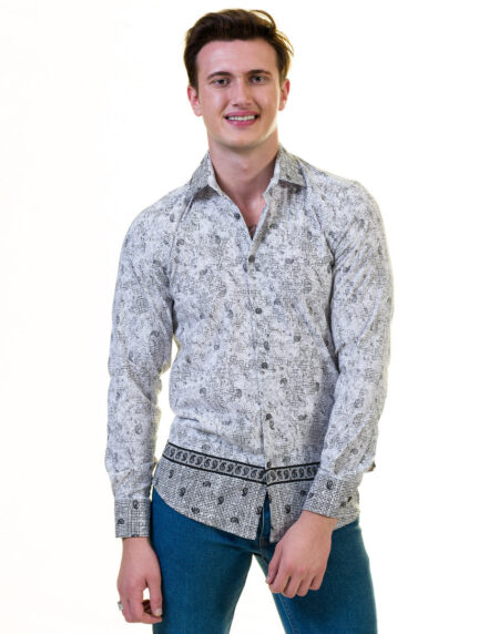 Grey Floral Mens Slim Fit Designer Dress Shirt - tailored Cotton Shirts for Work and Casual Wear