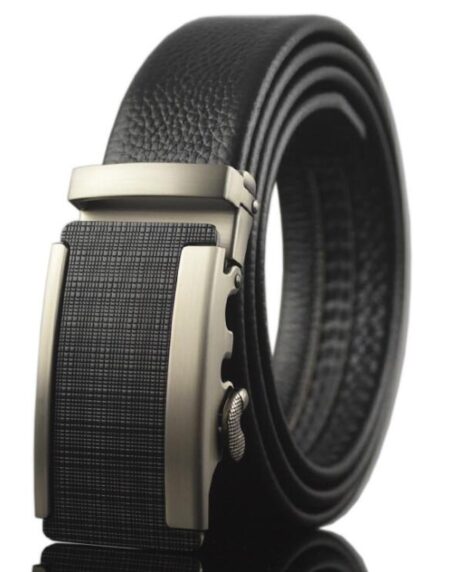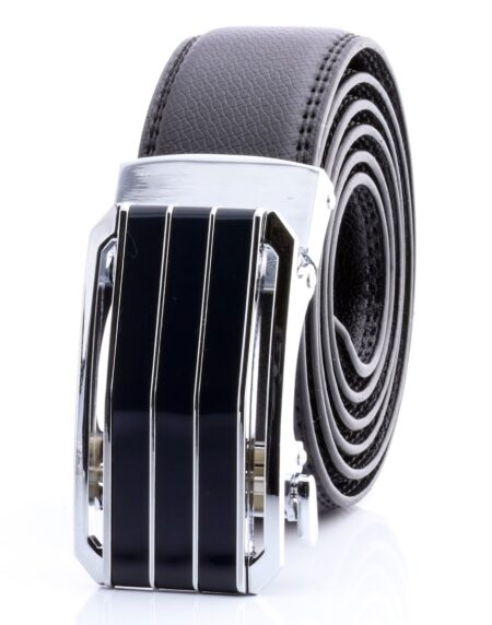 Men’s Black Ratchet Belt – Brushed Silver & Black Automatic Buckle | Adjustable 26”–52”