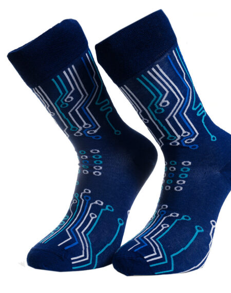 Dark Blue Printed -European Made - Egyptian Cotton Socks - Premium Cotton Fun socks with Soft Elastic
