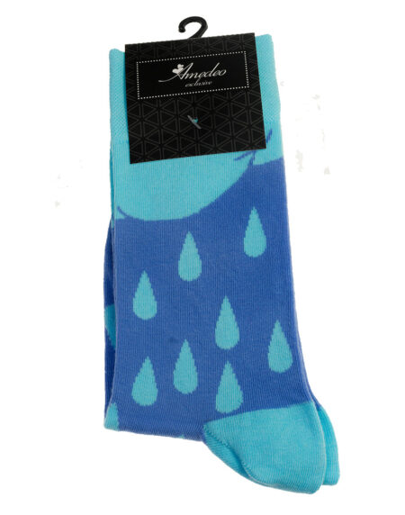Blue Water Drop -European Made - Egyptian Cotton Socks - Premium Cotton Fun socks with Soft Elastic