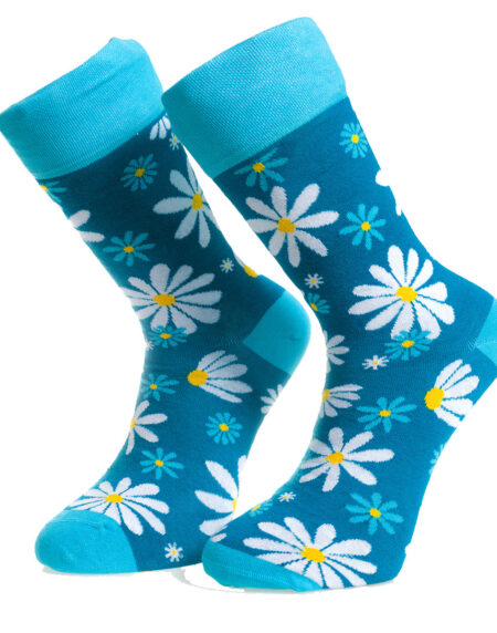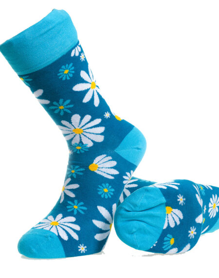 Blue With White Flowers-European Made - Egyptian Cotton Socks - Premium Cotton Fun socks with Soft Elastic