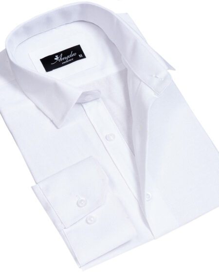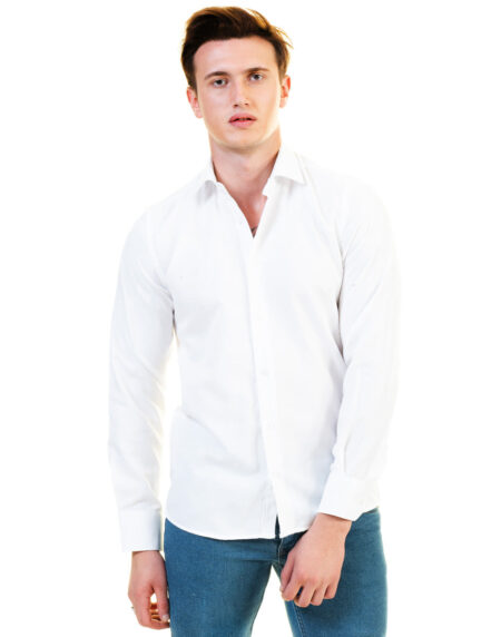 Solid White Mens Slim Fit Designer Dress Shirt - Tailored Cotton Shirts For Work And Casual