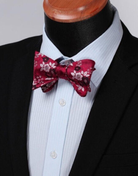 Men's White Red Floral Silk Pre-Tied Bow Tie